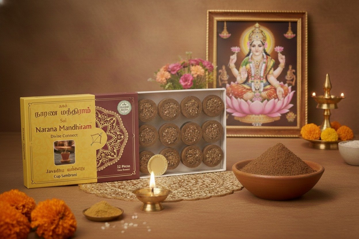 Designed for pooja rooms and meditation spaces, this sambrani fills your home with a warm, purifying fragrance that promotes peace and positivity.
